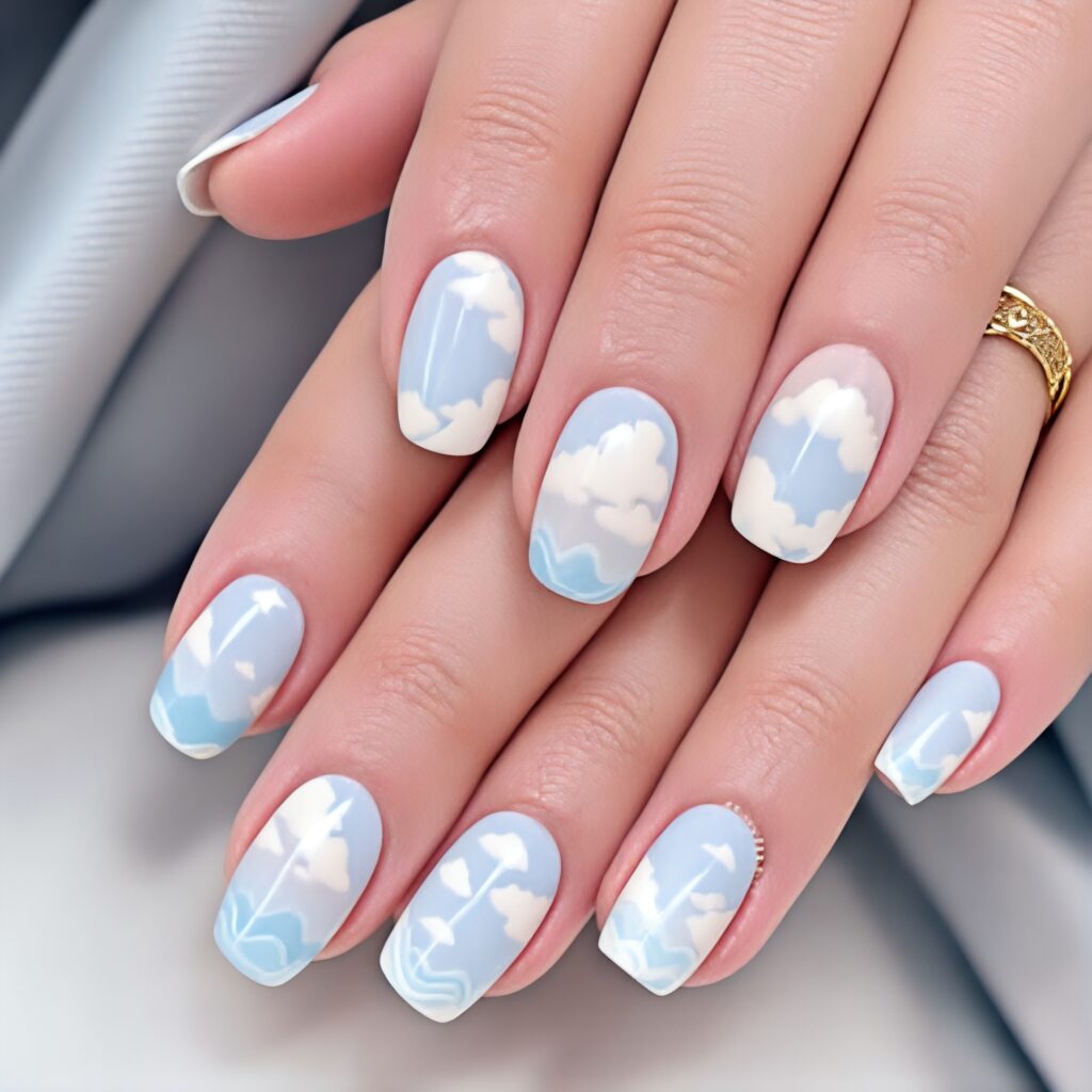 2. Sky Blue Nails with cool and calm