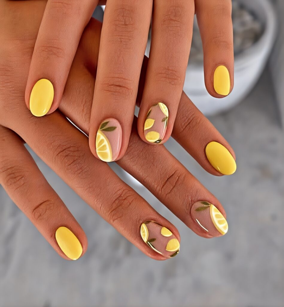 3. Lemon Yellow Nails with cheerful and refreshing