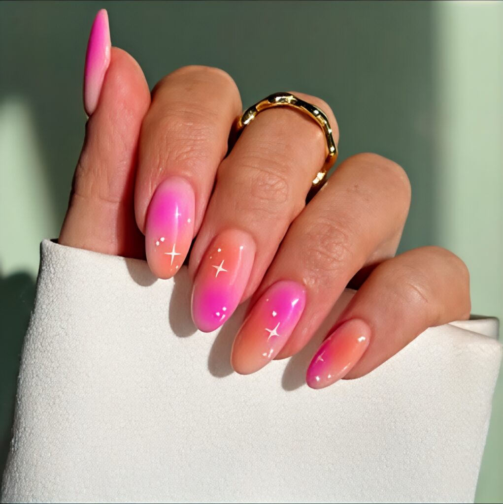 Ombre nails have a beautiful color fade from one shade to another. For example, pink slowly changes into white. This soft blending looks very attractive and smooth. It gives a dreamy and stylish feel. In summer pastel ombre looks the best. You can try blue to white peach to pink, or lavender to nude. Ombre nails look creative and different from plain colors. They are perfect for special outings but still simple enough for daily wear. If you want something unique yet soft, ombre nails are a lovely option.