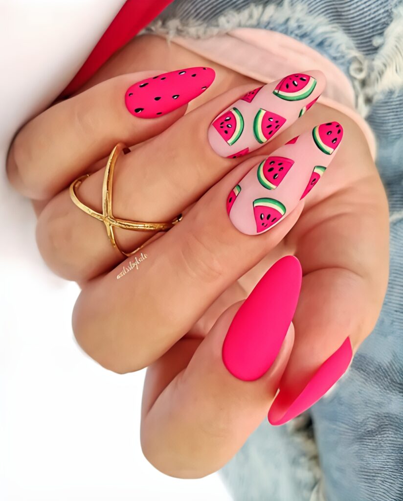 15. Watermelon Nails with matte finish