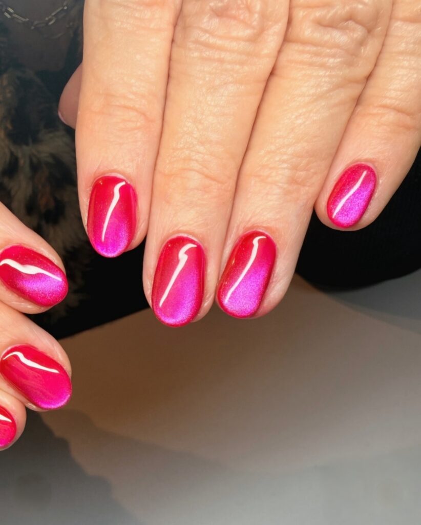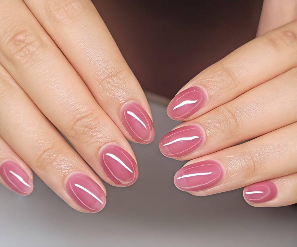 Pink jelly nails look shiny and slightly transparent. They look like candy or jelly. This design feels fresh and perfect for hot summer weather. The glossy finish makes nails look smooth and juicy. Jelly nails are simple but very trendy If you want a fun and modern look this design is a great choice. It gives cute and youthful vibes.