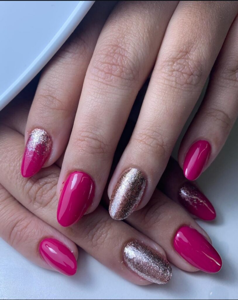 Glitter pink nails shine beautifully in sunlight. They are perfect for parties and festivals. You can use glitter on all nails or just one accent nail. Light pink with silver glitter looks soft and cute. Dark pink with golden glitter looks bold and rich. This style is fun and eye catching. If you love sparkle and shine glitter pink nails will make you smile every time you see them.