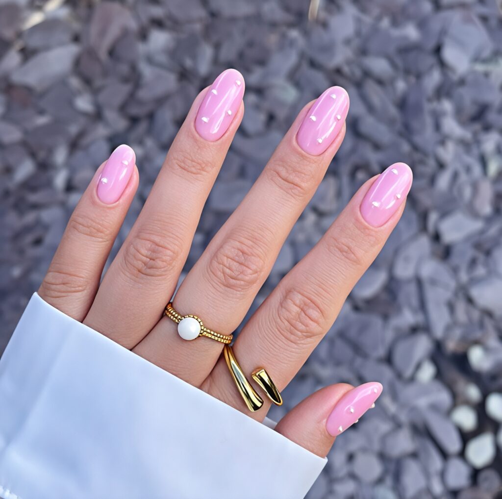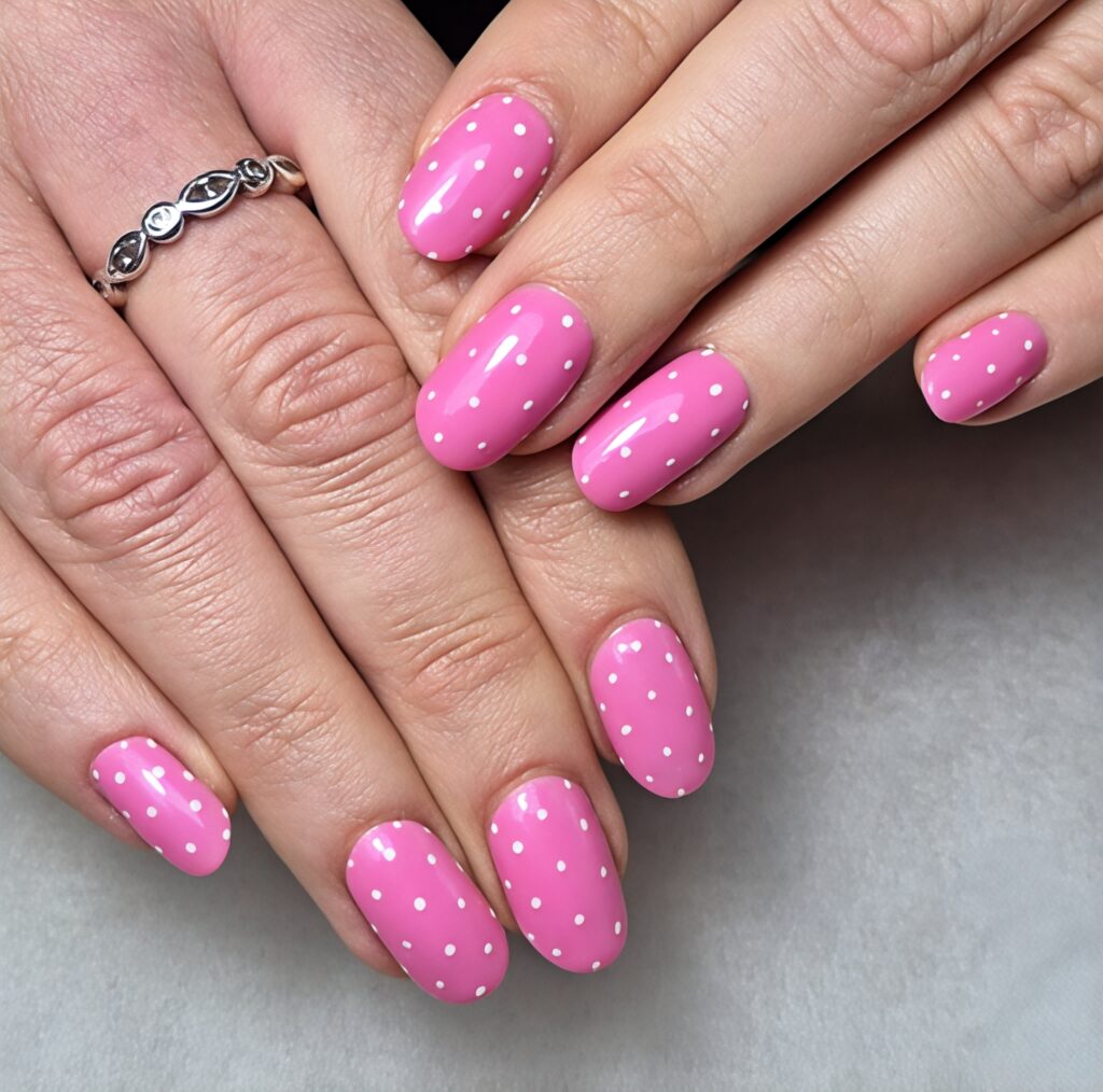 Pink polka dot nails look cute and playful. Small white or dark pink dots on a soft pink base make the design fun and simple. This style is perfect for summer days and casual outings. It reminds us of cute dresses and happy childhood memories. You can keep the dots tiny for a neat look. This nail idea is easy to try and always looks sweet and fresh.