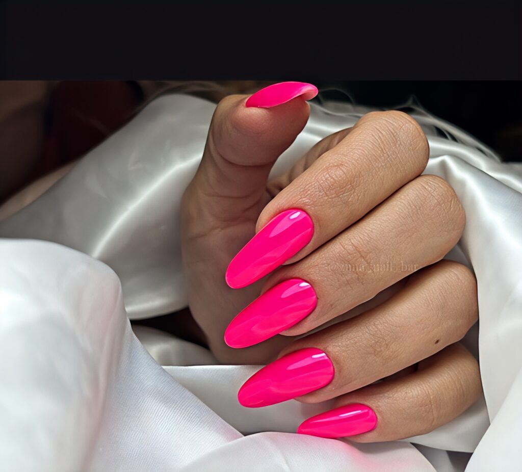 Neon pink nails are very bright and eye catching. This color shines strongly in sunlight. It is perfect for beach trips and summer holidays. Neon pink looks amazing with tan skin and summer outfits. If you love bold fashion and fun vibes this is the best choice. It makes your hands look lively and energetic. Neon nails show confidence and fearless style.