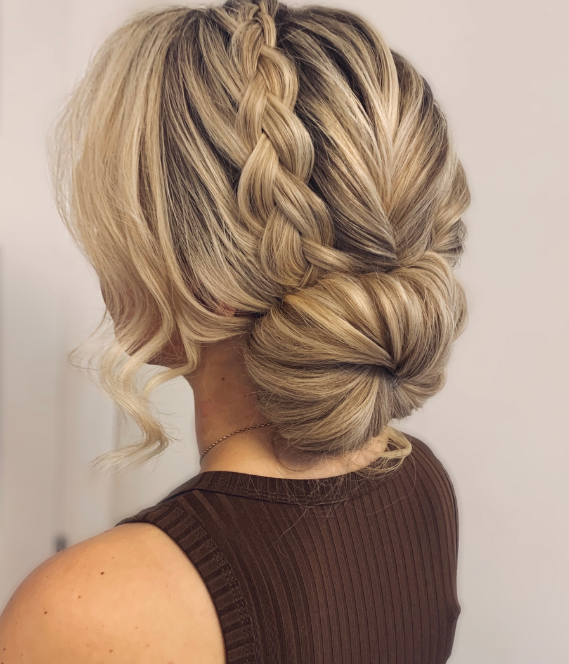 It feels modern and stylish. This hairstyle is perfect if your dress is heavy or shiny.