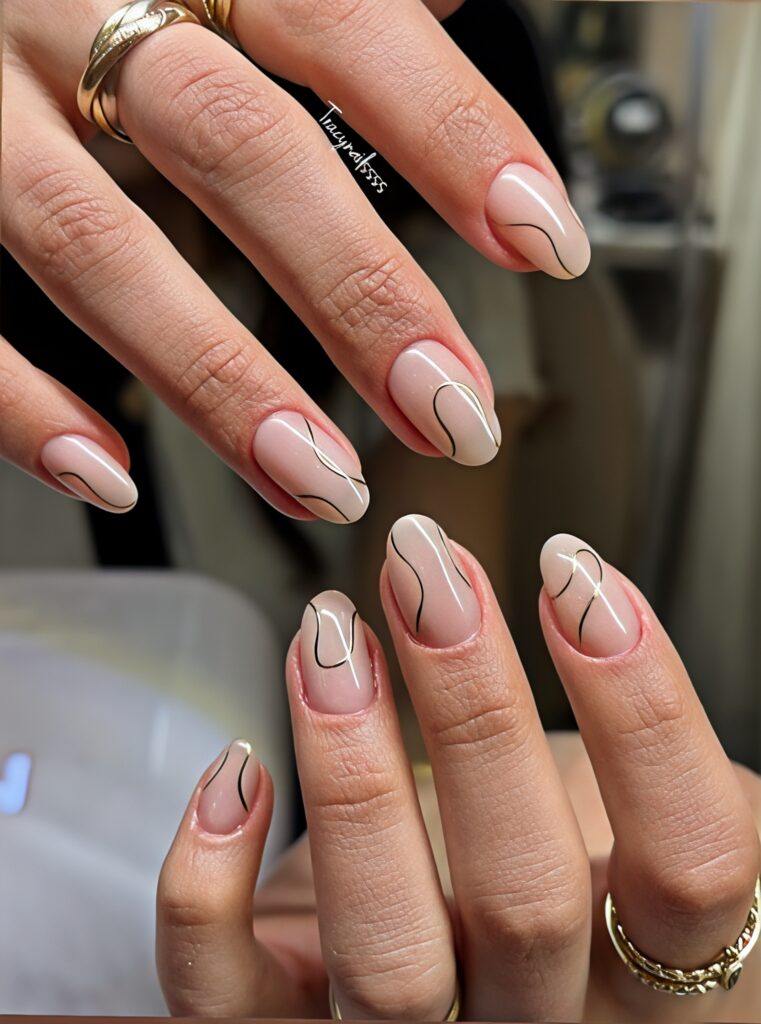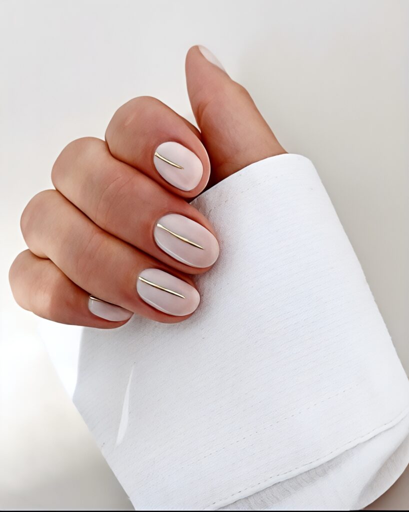Nude nails give a clean and natural look. This soft shade matches almost every outfit and occasion. On short nails nude color looks elegant and simple. You can keep it plain or add tiny gold curve lines for style. This design is perfect for daily wear and office use. It makes your hands look neat and well maintained.