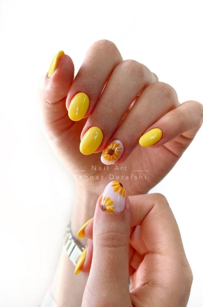 25. Sunflower Nails – Bright Flower Inspired Design
