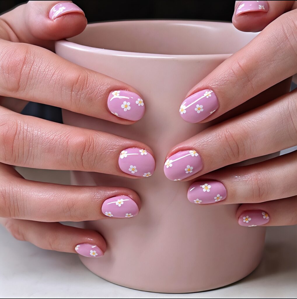 Daisy nails are soft and charming. Small white daisies on a light base look very cute on short nails. This design feels fresh and natural. You can use pink or blue background for extra beauty. Daisy nails are easy to create and look lovely in summer sunlight. They give a sweet and simple style.