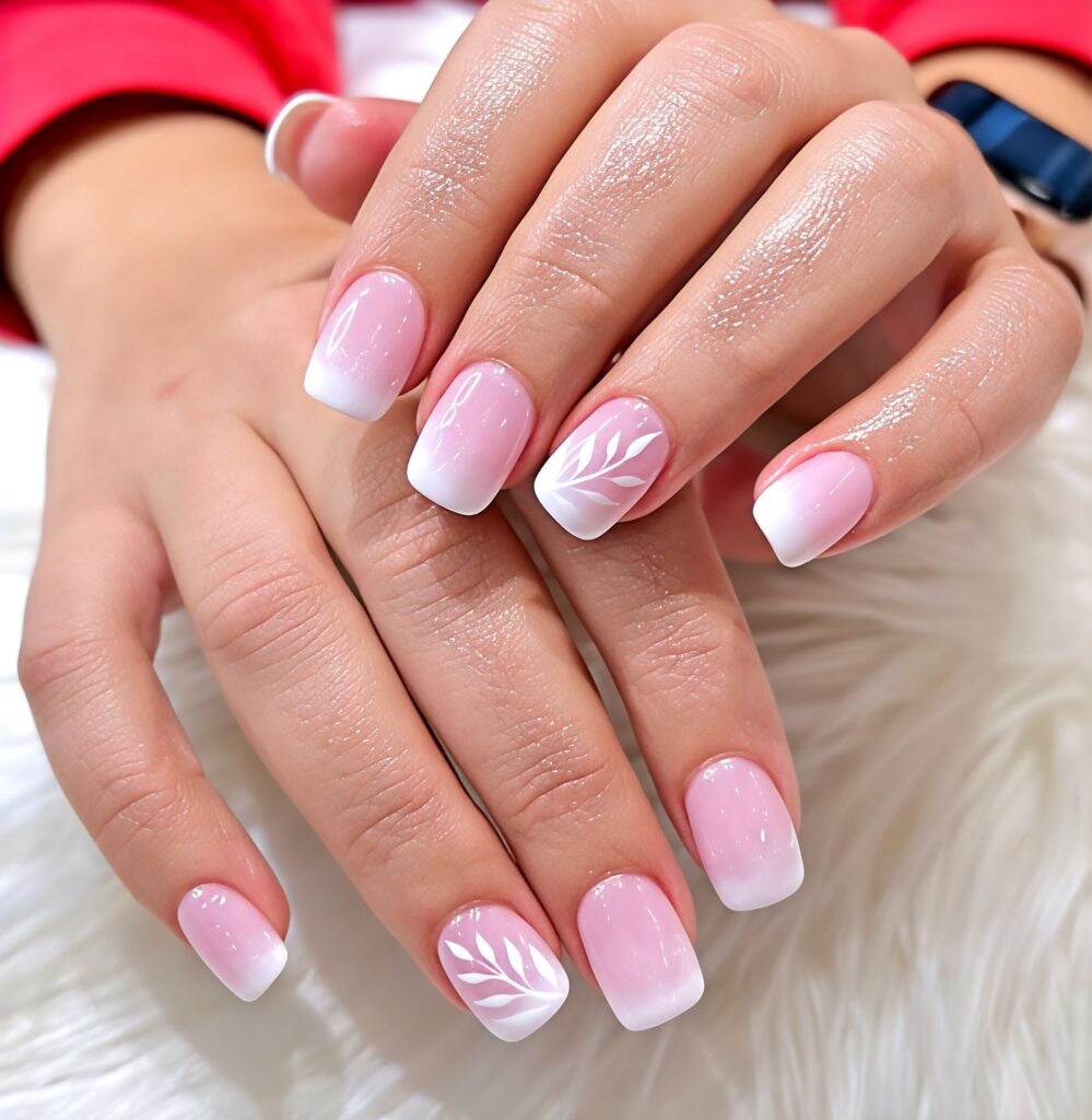 Ombre nails show a smooth color fade from light to dark. This gradient style looks soft and stylish. On short nails, pastel ombre shades look very beautiful. You can mix pink and white or blue and purple with additional of white leaf on single nail . It gives a modern and creative summer look. Ombre nails are simple yet eye-catching.