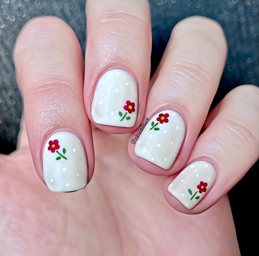 27. Daisy Nails – Tiny White Flower Design