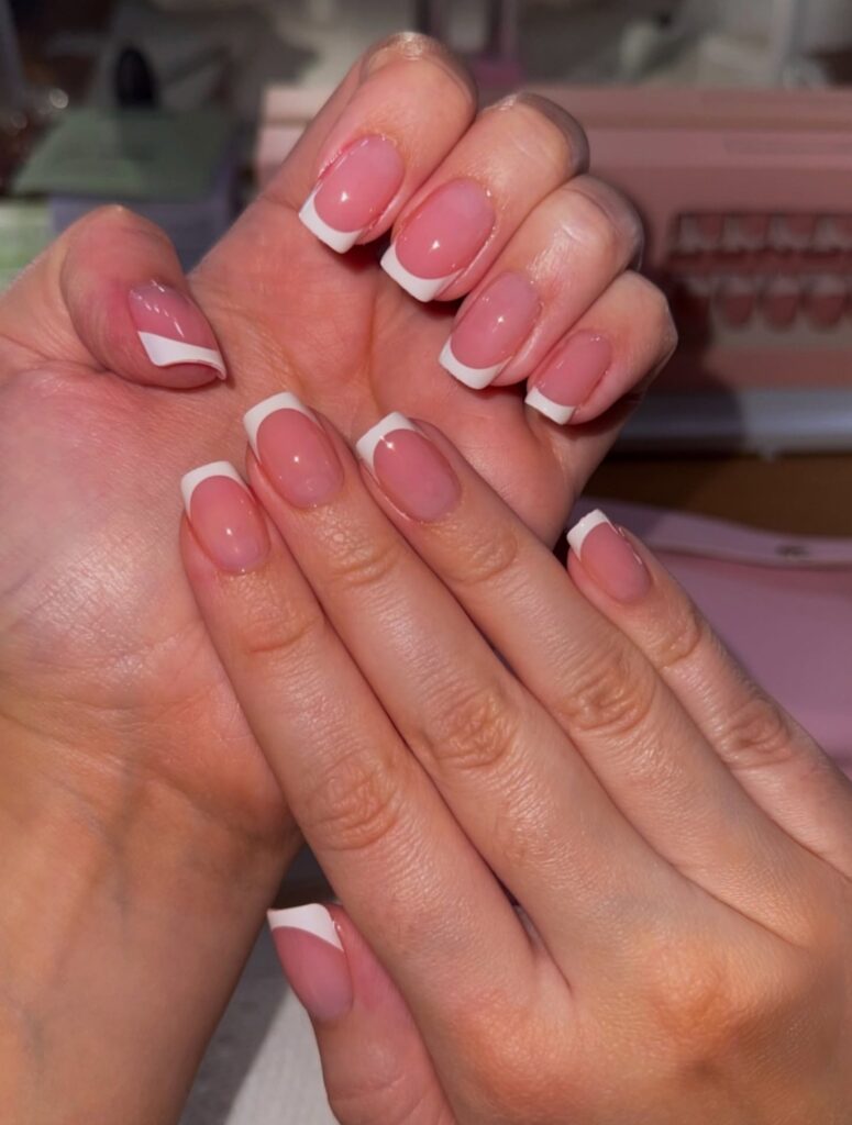 14. French Tips – Classic White Edge Style