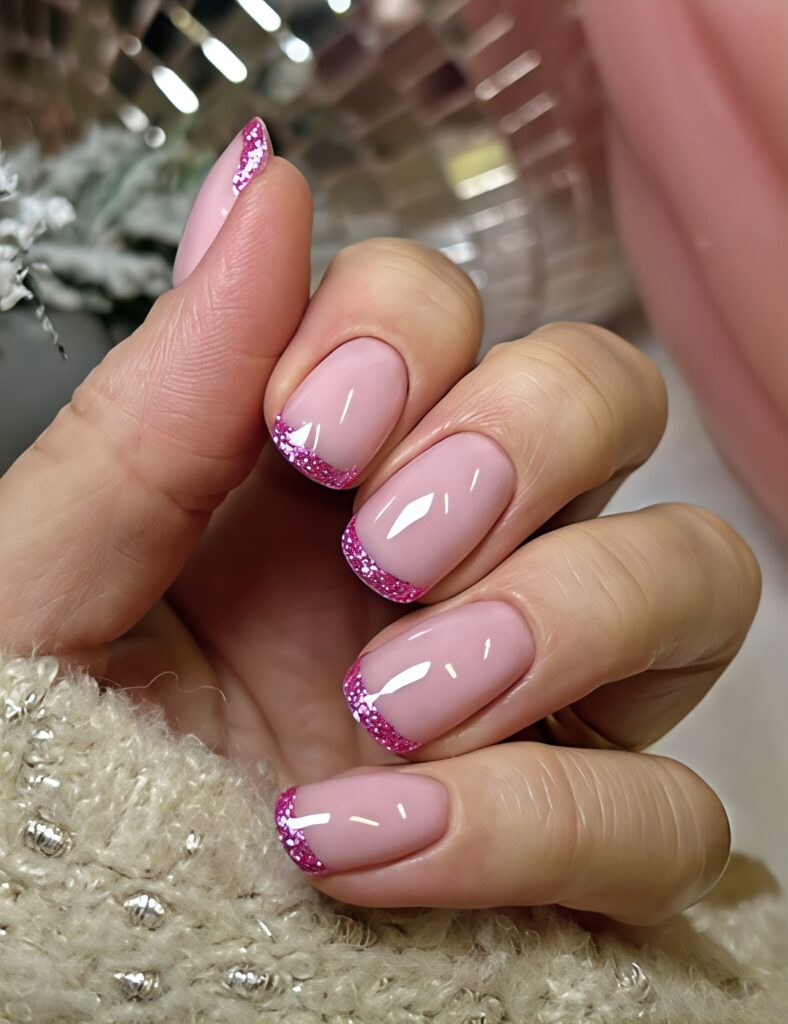 28. Glitter French Tips – Sparkly Modern Classic Style