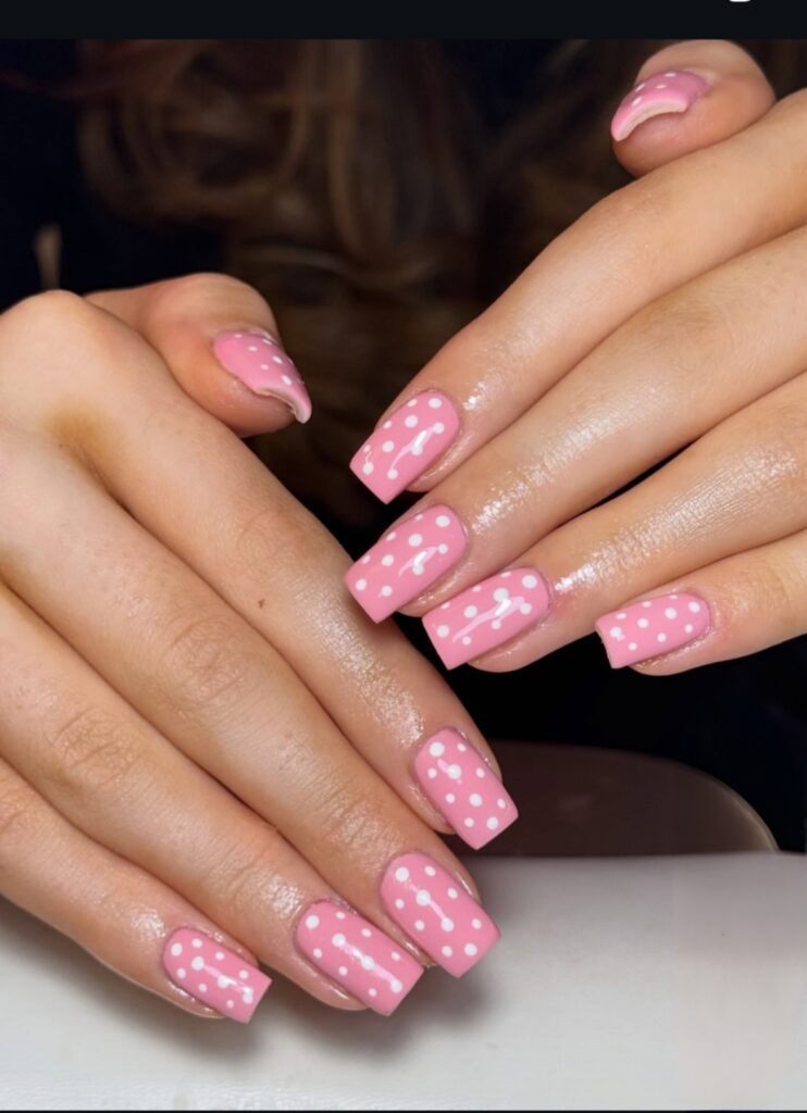 Dots on pastel nails create a playful and creative style. I remember using pastel baby pink as the base and adding small white dots. It reminded me of candies and notebooks with dotted patterns. This design is also beginner-friendly and doesn’t look heavy. It suits younger girls and teens who like cute and simple nail art. Also perfect for spring and summer pictures on Pinterest or Instagram.