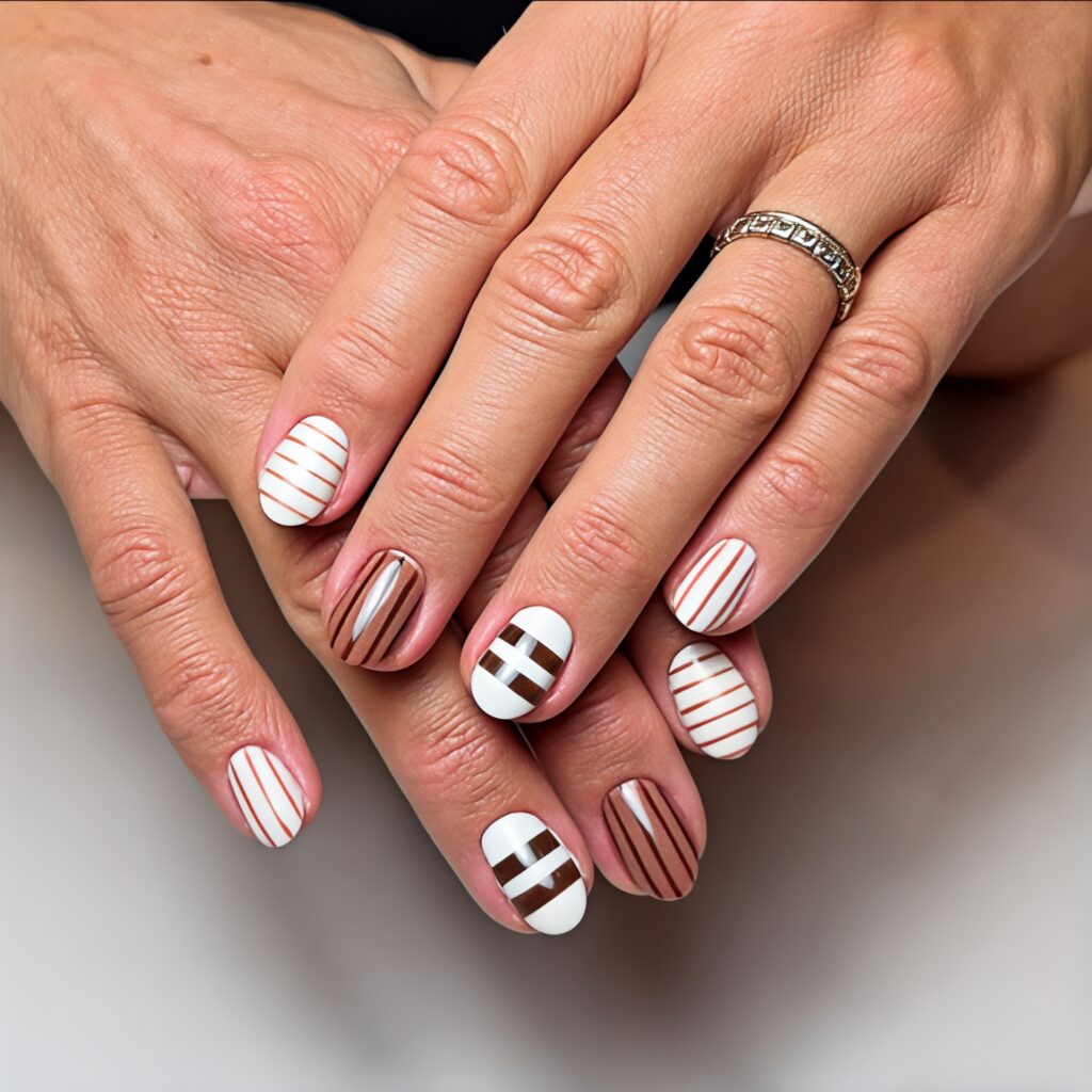 Striped pastel nails are neat and modern. I once used pastel nude as a base and added pastel blue thin stripes and it looked clean but fashionable. This design is perfect for girls who love organized and balanced patterns. It suits casual outings school events and even simple celebrations. Stripes make nails look longer and stylish without adding too much decoration or glitter.