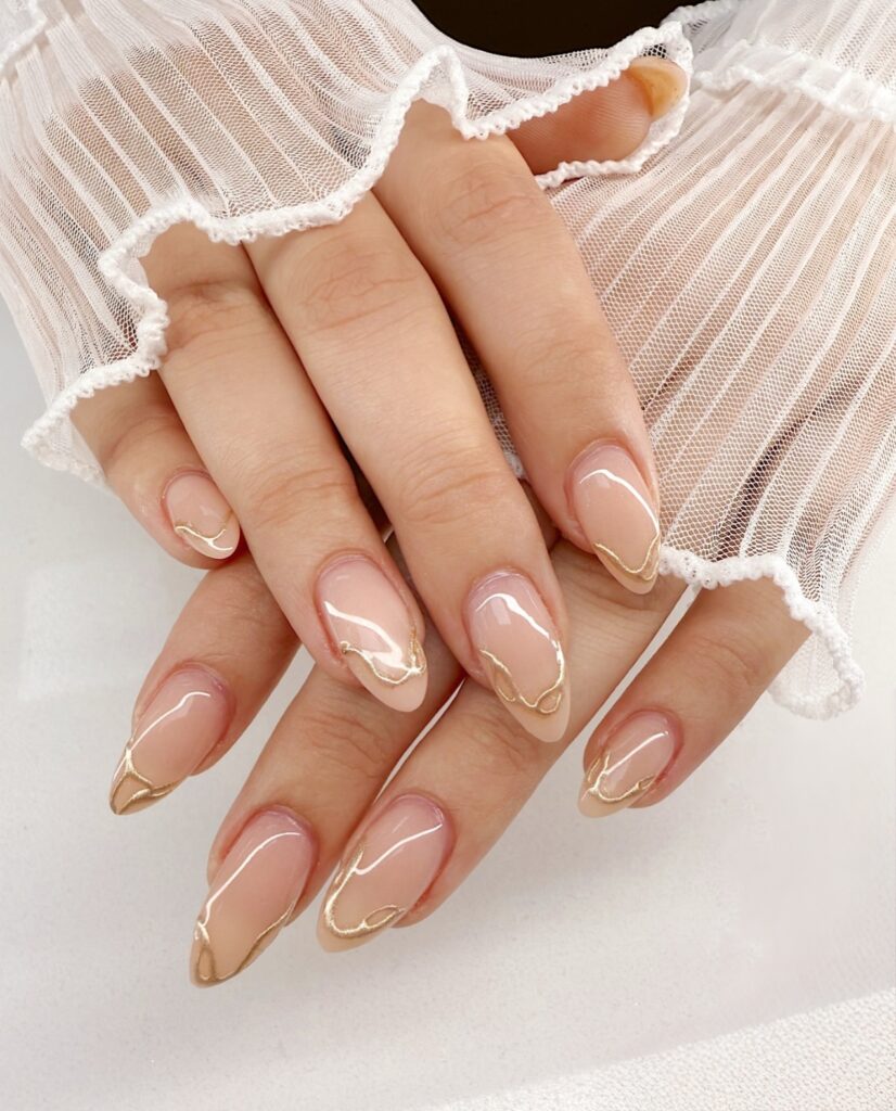 Pastel shades look even more polished when paired with gold lines. When I tried pastel nude with a thin gold stripe in the middle it gave a luxury touch that wasn’t loud. Gold details always make nails look elegant and rich. This trend is especially great for festivals, parties and traditional outfits. It adds shine and beauty while keeping the pastel shade soft and classy.