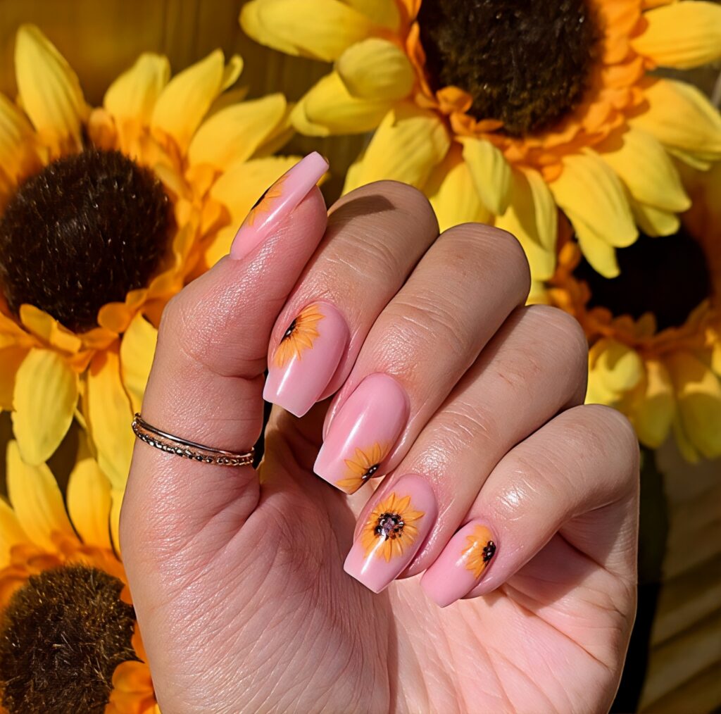 Sunflower nails are bright, bold and full of happiness. The yellow petals with a brown center look just like real sunflowers in summer fields. This design brings positive and cheerful vibes. You can paint one sunflower on each nail or keep one accent nail special. These nails look amazing with summer dresses and sunny days. If you love nature and bright colors sunflower energy nails will make you smile every time you see them.