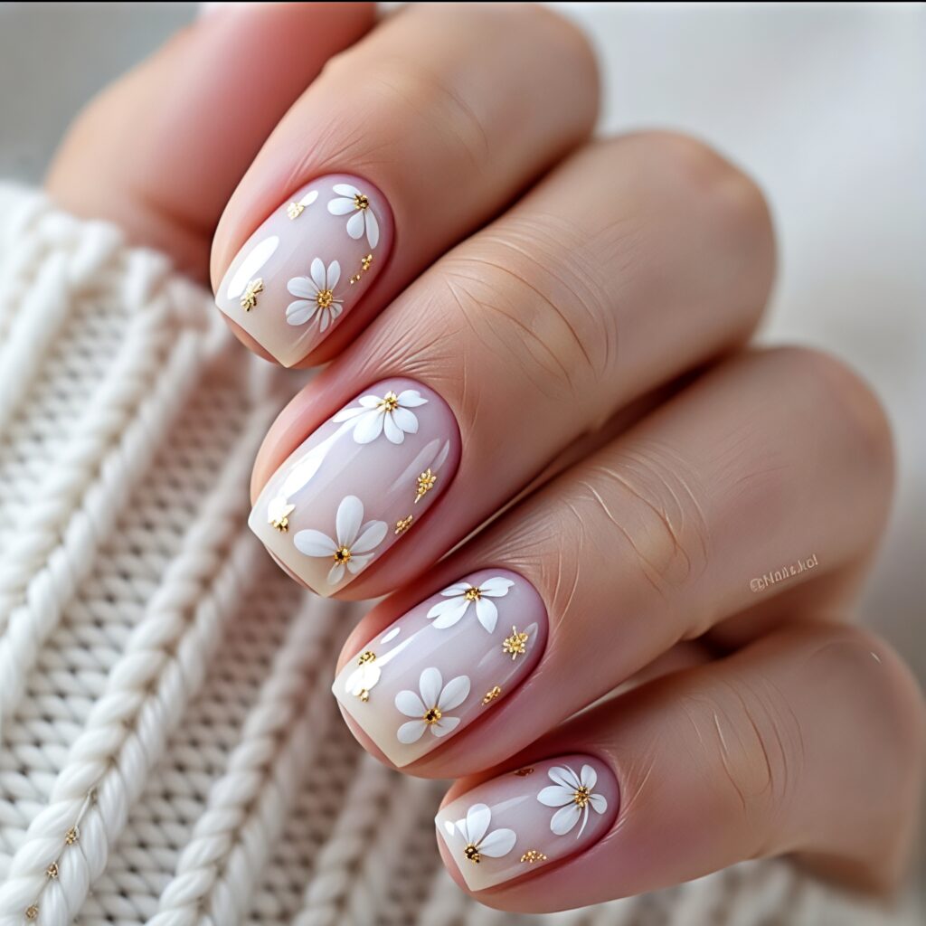 White nails look clean and fresh. Adding tiny daisy flowers makes them look sweet and pretty. This design is simple but very elegant. It is perfect for girls who like soft and calm styles. The small flowers give a delicate touch without making the nails look too busy. These nails are great for everyday wear and special events. They give pure and fresh summer vibes.