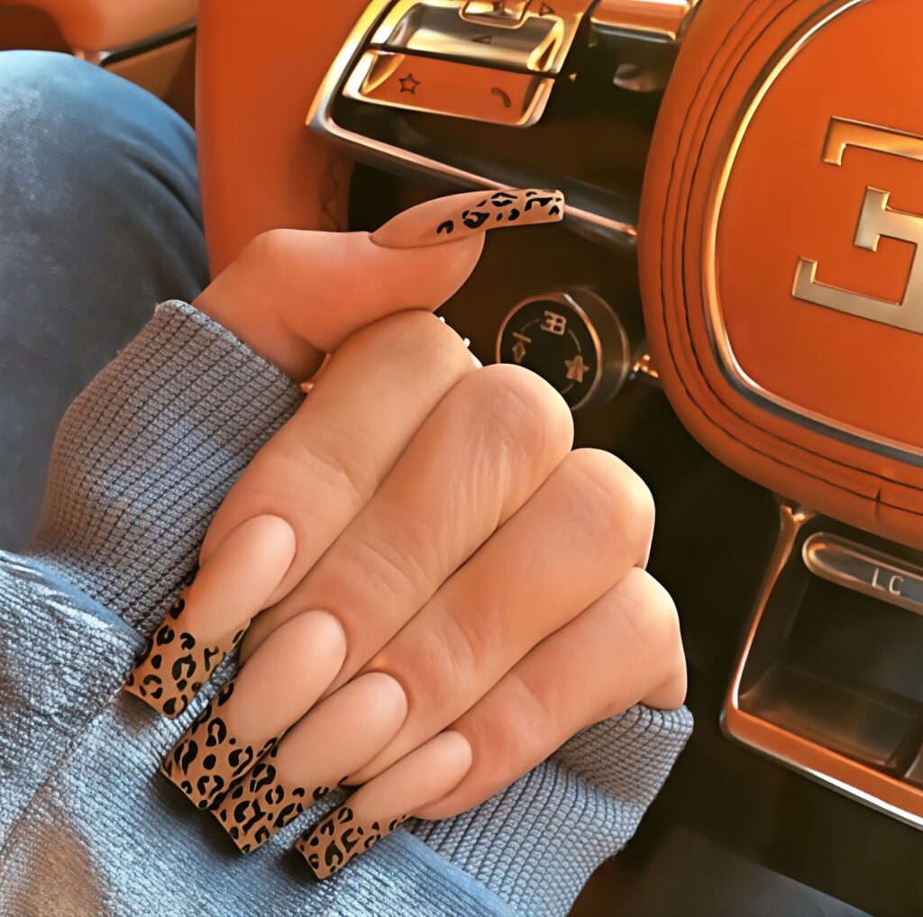 Wildcat energy nails bring bold leopard print into summer style. The base can be nude, peach, light, brown and black and brown spots are added to create leopard patterns. This design looks strong and confident. It shows a fearless personality. You can also add a little gold glitter to make it more stylish. These nails are perfect for parties, shopping days and when you want to feel powerful and fashionable.