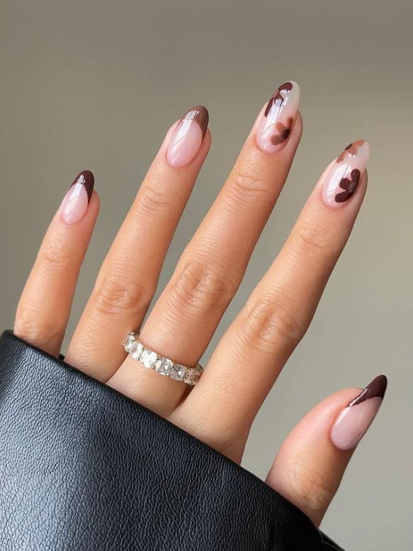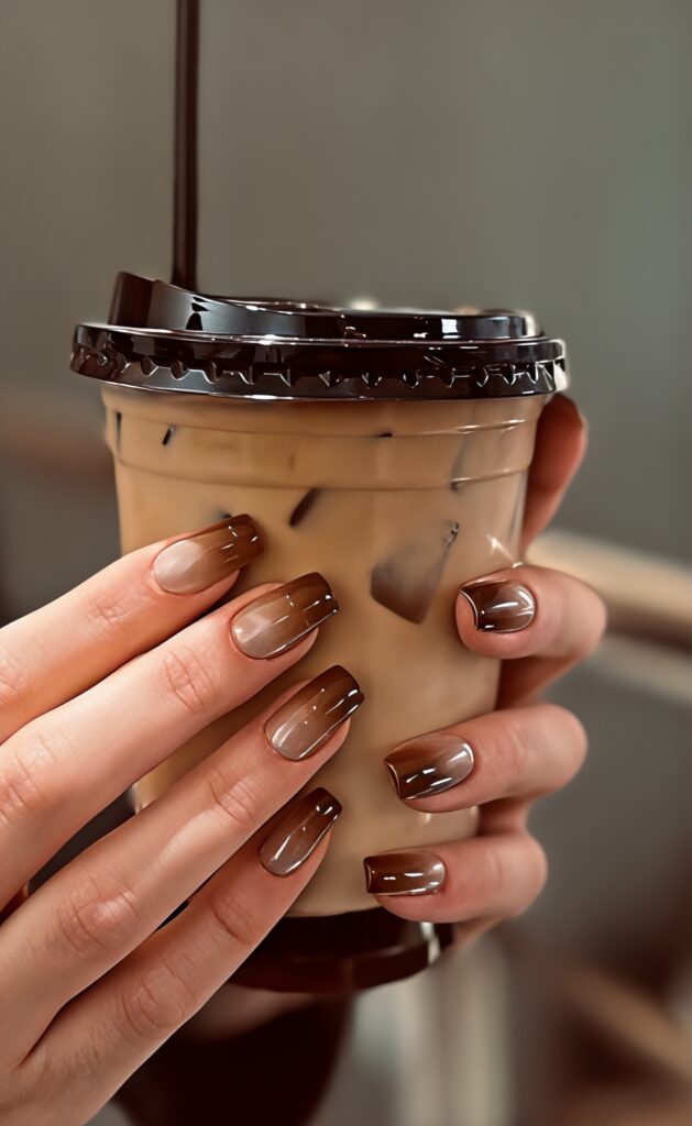 Mocha fade nails use soft brown and beige shades blended together. The color slowly changes from dark brown to light nude creating a smooth ombre look. This design feels warm and cozy but still perfect for summer evenings. It looks natural and classy. If you love neutral colors and simple beauty this style is ideal. It matches well with casual and formal outfits both.