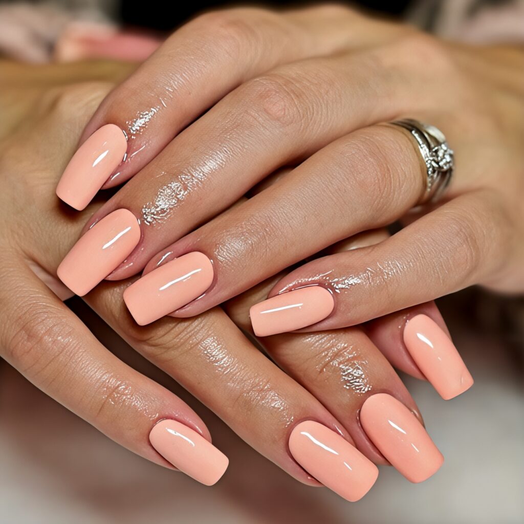 Peach sorbet nails are soft, sweet and perfect for summer. The peach color looks fresh and warm just like a cold dessert on a hot day. You can keep it simple with one color or add small white flowers for extra beauty. This design is light and cheerful. It suits every skin tone and looks good with summer dresses. It is simple but very pretty.