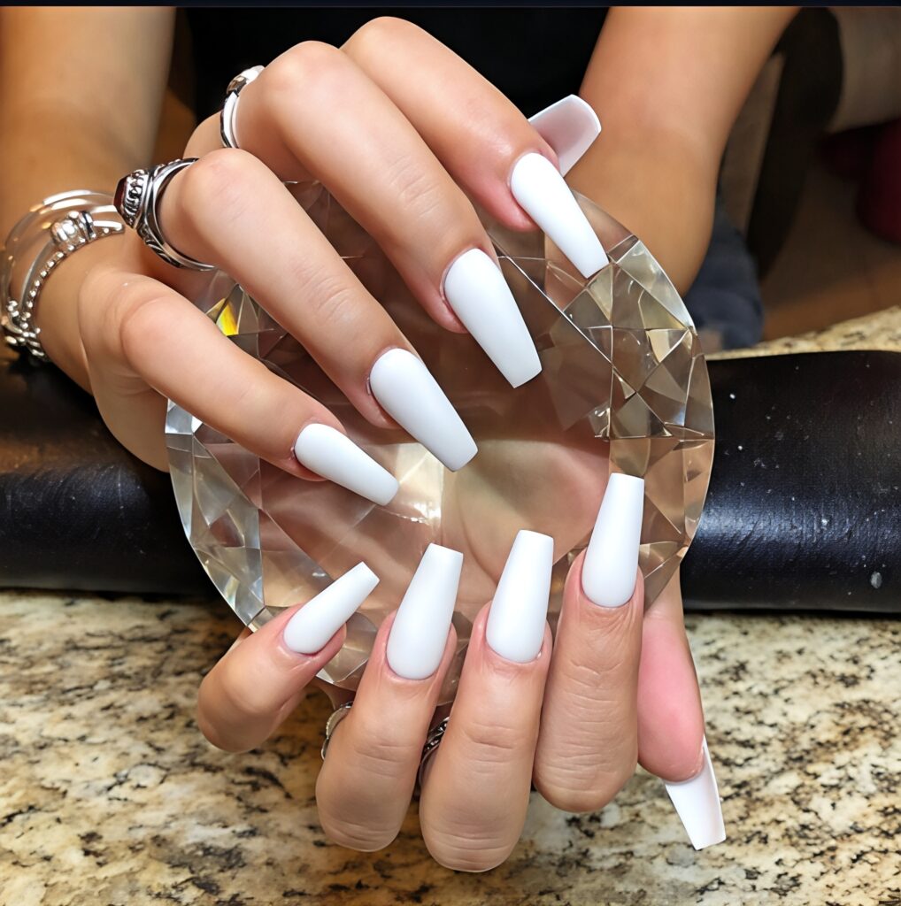 Milk bath white nails are soft, clean and very elegant. The color is not bright white but a soft milky shade that looks natural and fresh. Sometimes tiny dried flowers or light shimmer are added inside the polish to give a gentle effect. This design feels calm and pure perfect for summer days when you want something simple. It matches every outfit and looks neat for school, college or even special family events.