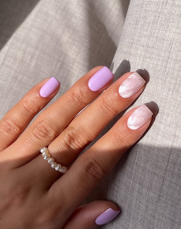 Electric purple is a bold and eye catching color. When mixed with a marble design it looks even more powerful and stylish. The marble effect is created by mixing purple with white in soft swirl patterns. Every nail looks slightly different which makes the design unique. This style shows confidence and strong personality. It is perfect for parties, celebrations or when you want your nails to stand out in a crowd.